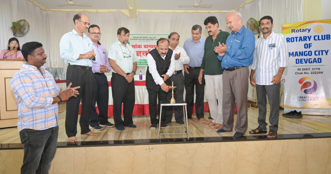 रोटरी क्लब ऑफ मँगो सिटी देवगड आणि डॉ बाळासाहेब सावंत कोकण कृषी विद्यापीठ दापोली यांच्या संयुक्त विद्यमाने मंगळवारी देवगड येथील इंद्रप्रस्थ हॉल येथे आंबा बागायतदारांसाठी आयोजित केलेल्या चर्चासत्रामध्ये ते बोलत होते. या कार्यक्रमाचे उद्घाटन डॉ. प्रकाश शिनगारे, संशोधन संचालक यांच्या हस्ते करण्यात आले .यावेळी प्रमुख अतिथी म्हणून डॉ सुरेंद्र पतंगे (सहयोगी अधिष्ठाता काढणी पश्चात व्यवस्थापन महाविद्यालय रोहा) डॉ केतन चौधरी( विस्तार शिक्षण विभाग प्रमुख) डॉ सुरेश नाईक, रोटरी क्लबचे प्रेसिडेंट प्रवीण पोकळे सचिव विजय डांबरी विजय बांदिवडेकर, नरेश डामरी, तालुका कृषी अधिकारी प्रदीप खाडे, आदी उपस्थित होते.