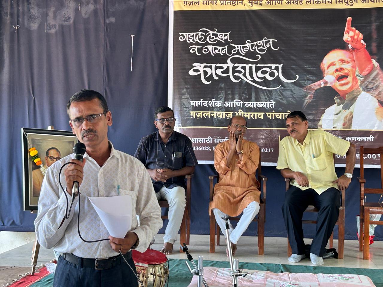 सिंधुदुर्गातील आघाडीचे गजलकार कै. मधुसूदन नानिवडेकर यांच्या जयंतीदिनी ही कार्यशाळा कणकवलीत संपन्न होत आहे. हा सुद्धा सुयोगच असून मधुसूदन नानिवडेकर हे गजलकार आणि एकंदरीत माणूस म्हणूनही मोठे व्यक्तिमत्त्व होते हे नमूद करून त्यांनी नानिवडेकर यांना श्रध्दांजली वाहिली. अखंड लोकमंचातर्फे भीमराव पांचाळे सत्कार करण्यात आला. सूत्रसंचालन मोहन कुंभार यांनी केले.