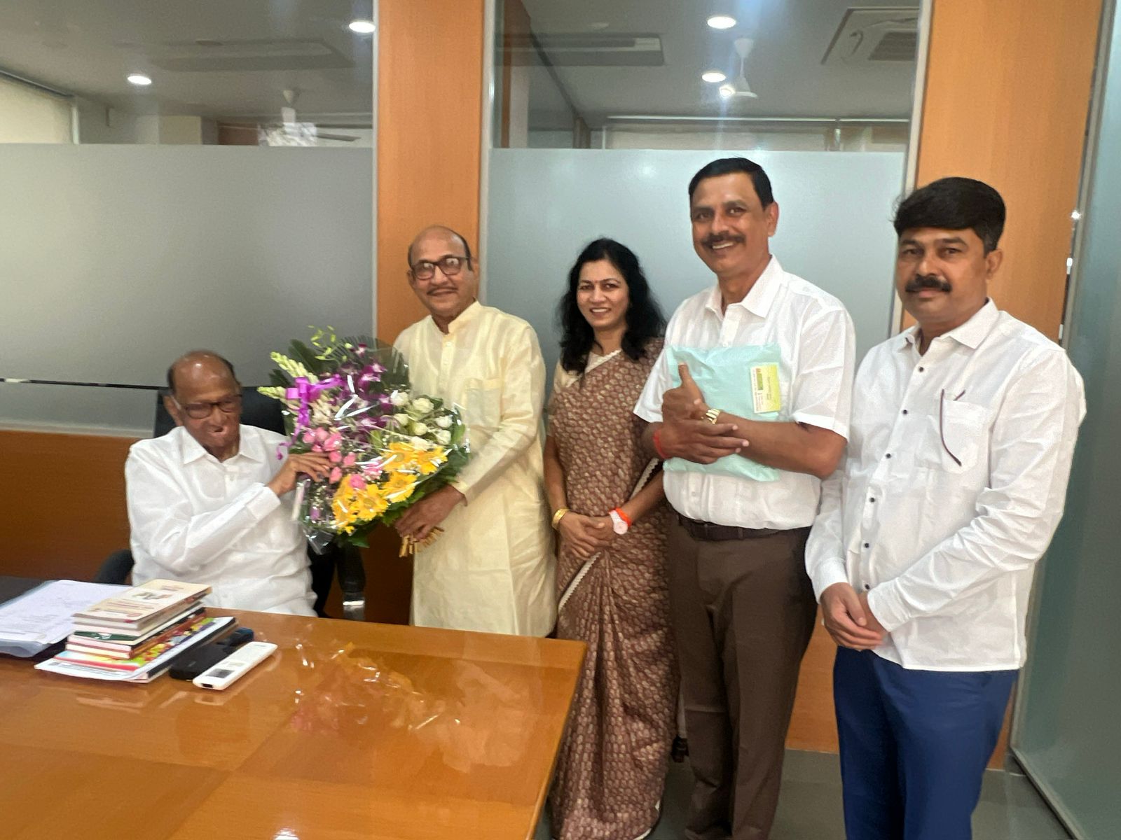 ⚡सावंतवाडी ता.१०-: राष्ट्रवादी काँग्रेस पार्टीच्या वर्धापन दिनानिमित्त पक्षाचे संस्थापक अध्यक्ष शरदचंद्र पवार यांची भेट सिंधुदुर्ग जिल्ह्यातील पदाधिकाऱ्यांनी घेतली.यावेळी त्यांना पदाधिकाऱ्यांनी पुष्पगुच्छ देत शुभेच्छा दिल्या.