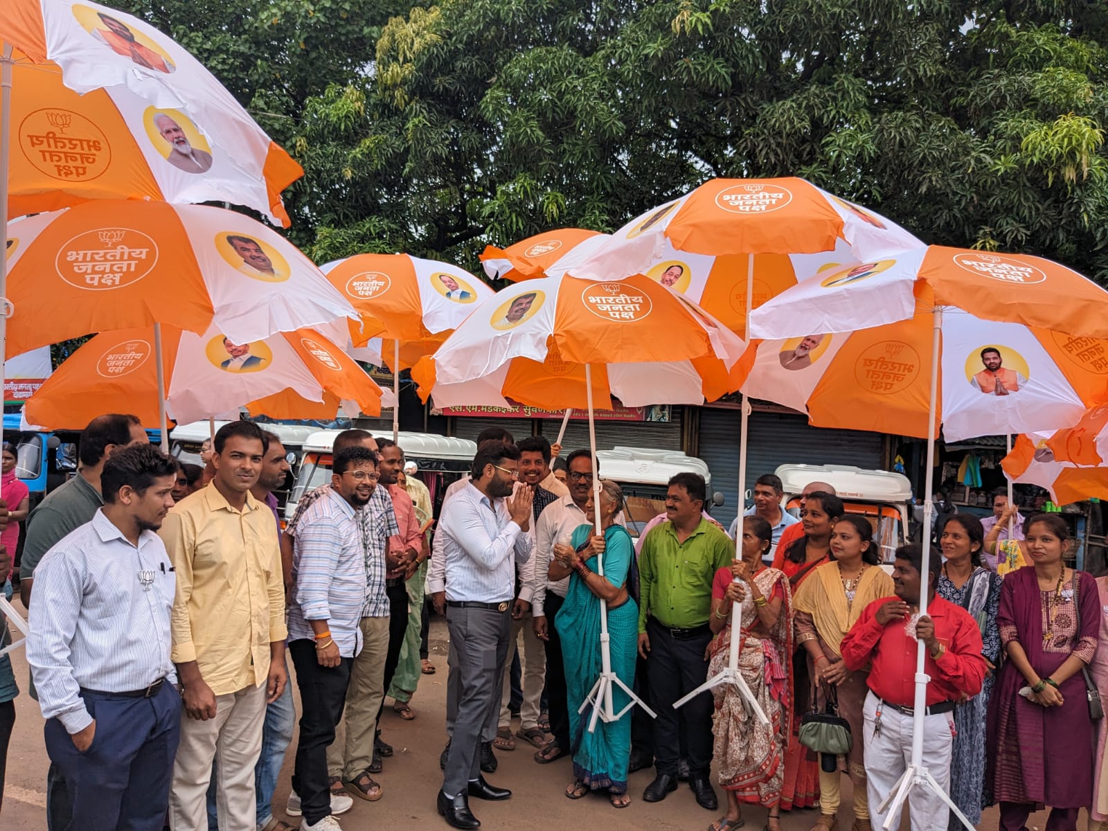 ⚡दोडामार्ग ता.११-: भारतीय युवा मोर्चा प्रदेश उपाध्यक्ष विशाल परब यांच्या माध्यमातून भारतीय जनता पक्षातर्फे दोडामार्ग बाजारपेठेतील व्यवसायिक, फळ व फुल विक्रेत्यांना मोठ्या छत्र्यांचे वाटप करण्यात आले.