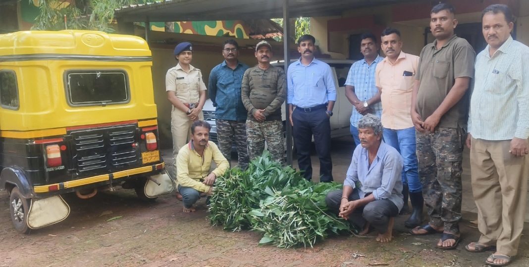 याबाबत अधिक माहिती अशी की, सावंतवाडी वन विभागाचे फिरतेपथक वेंगुर्ला येथे कार्यरत असलेल्या मठ परिमंडळ अंतर्गत येणाऱ्या मातोंड वन गट नंबर-246 ची तपासणी करीत असताना दुपारच्या दरम्यान जंगलामध्ये जागोजागी भेडल्यामाड झाडांची तोड करून पाने गोळा केला असल्याचे दिसून आले. या तोडीचा कानोसा घेत आरोपींचा तपास केला असता काही अज्ञात इसम जंगलामध्ये विळ्याच्या सहाय्याने भेडल्यामाडाची तोड करुन, पानांचे ढीग बांधत असल्याचे दिसून आले. सदर इसमांना ताब्यात घेऊन चौकशी केली असता त्यांची नावे बाबल लाडू परब, वय-49 वर्षे व प्रकाश लाडू जाधव, वय-55 वर्षे, दोघेही राहणार मौजे-तळवडे येथील असल्याचे निष्पन्न झाले. सदर आरोपींची चौकशी केली असता भेरलेमाडाच्या पानांची तोड ही मुंबई-पुणे येथे विक्रीच्या उद्देशाने पाठवण्यासाठी केली असल्याचे सदर आरोपींनी मान्य केले. आरोपींनी सोबत भेरलेमाड पानांच्या वाहतुकीसाठी आणलेली एक तीनचाकी रिक्षा (MH-07 C 5771), पाळ, कोयता देखील जप्त करण्यात आले.