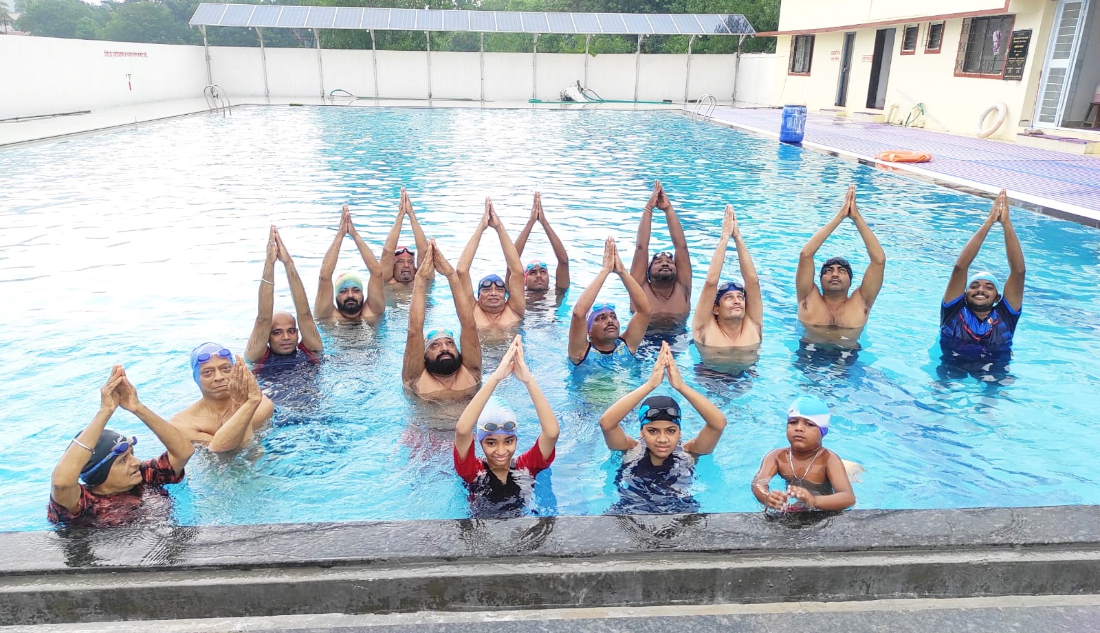 कॅम्प येथील नगरपरिषदेच्या जलतरण तलाव येथे रोज सकाळी बरीच लहान मुले, युवक, प्रौढ आणि ज्येष्ठ नागरिक पोहण्यासाठी येतात. आज यगदिनानिमित्त पाण्यात राहून वॉटर योगा करीत अनोखा योगदिन साजरा केला. त्यानंतर जलतरणाचा आनंदही लुटला.
