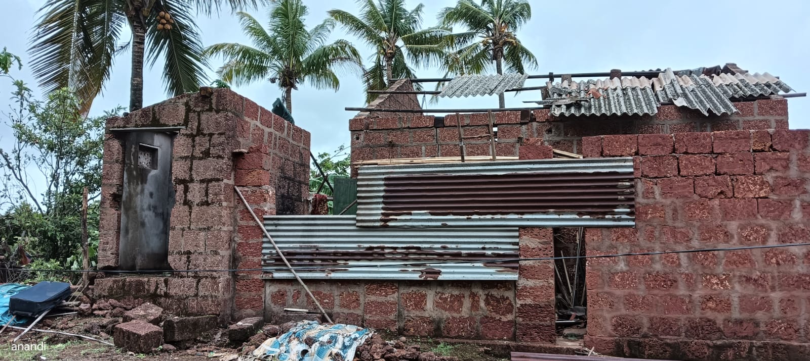 सूर्यकांत नाना नरे यांच्या कौलारू घराची वादळाने कौले उडून गेली तर घराचे काही वासे मोडले. अंगणासमोर घातलेला मंडपही मोडला आहे. घराचे सिमेंट पत्रे देखील उडून गेले आहेत घरातील धान्याचे देखील भिजल्याने नुकसान झाले आहे .यांच्या घराची १००० कौले, ३६ पत्रे १५० वासे, १०० रिप, १ माड,५० काजू कलमे,२ आंबा कलमे,१ चिकू असे मिळून अंदाजे ३ लाख रुपयांचे नुकसान झाले आहे.