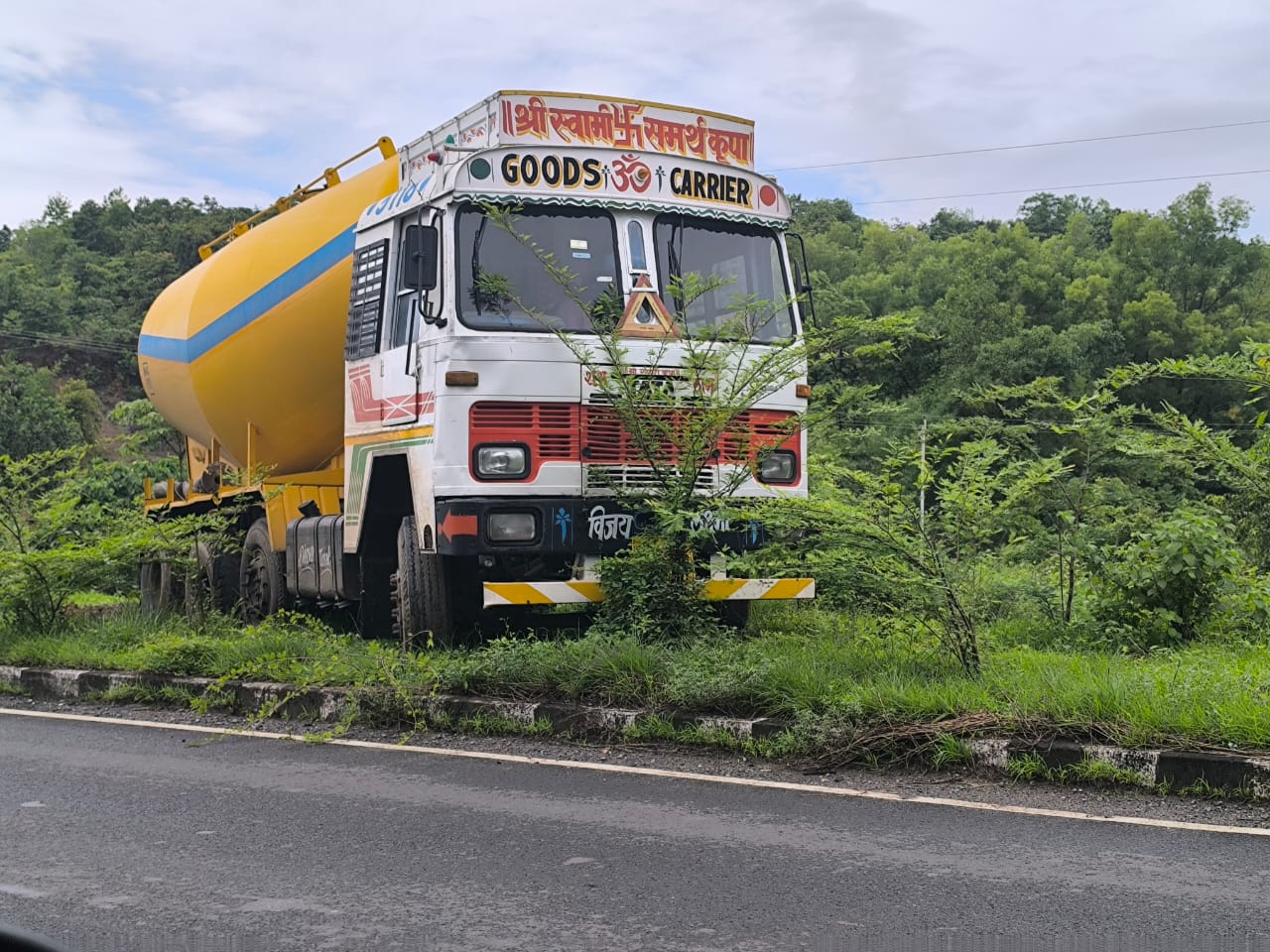 वेत्ये येथे ट्रक चढला डीव्हायडरवर…