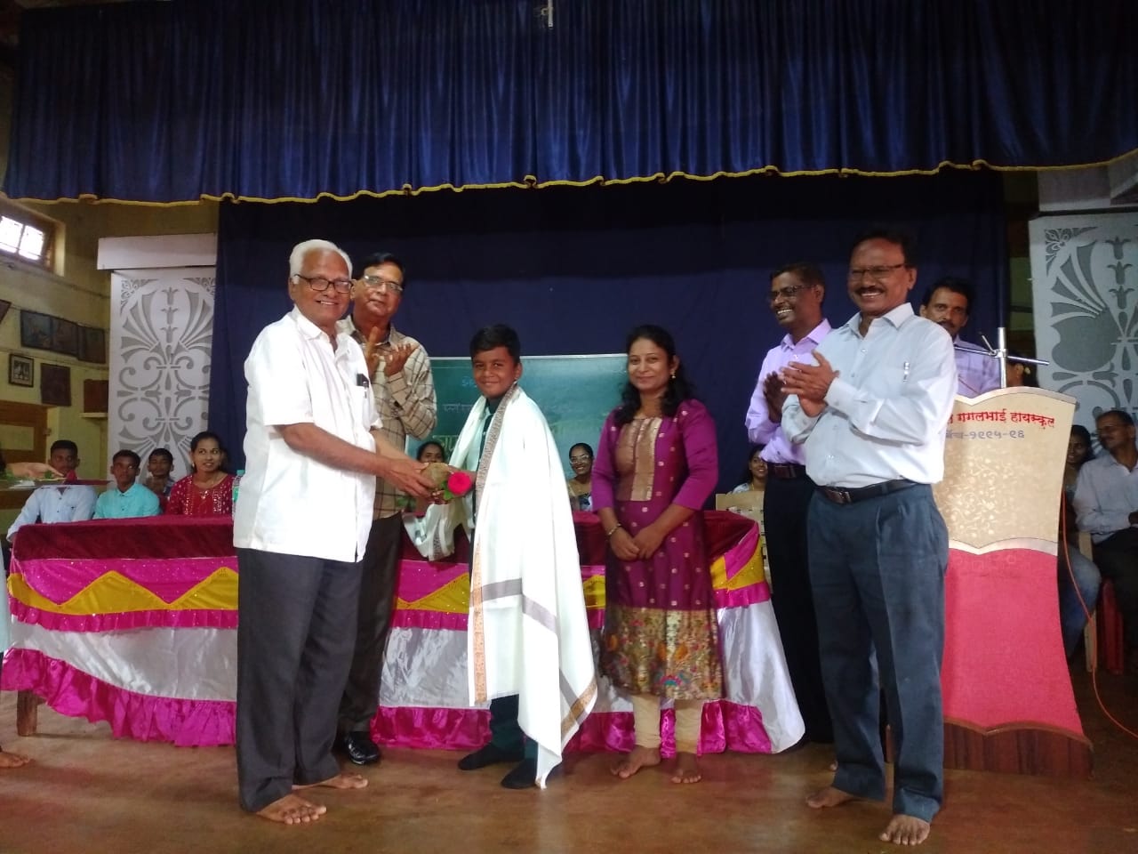 हर्ष देवगड शेठ. म.ग.हायस्कूलचा विद्यार्थी असल्याने प्रशालेच्या वतीने केला गौरव..