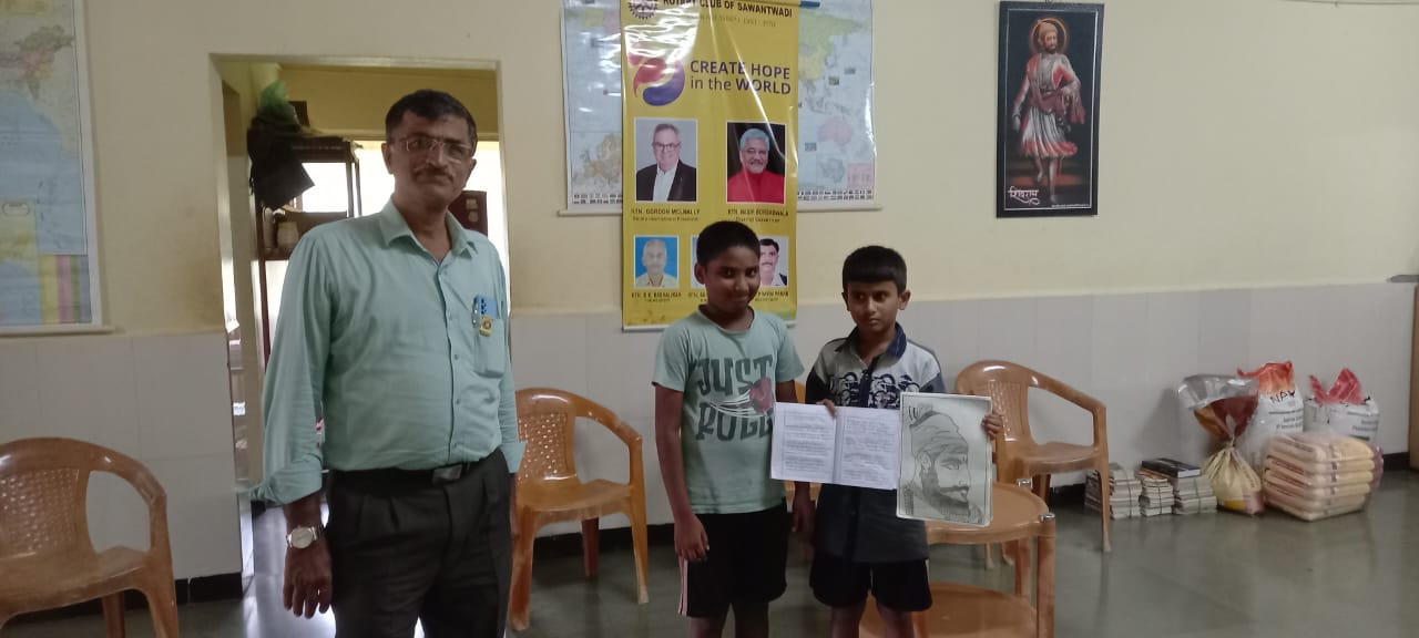 यावेळी सुंदर हस्ताक्षर आणि उत्तम चित्रकला काढणा-या देवेश गवस या मुलाचे अध्यक्ष रो.सुहास सातोस्कर यानी कौतुक केले.