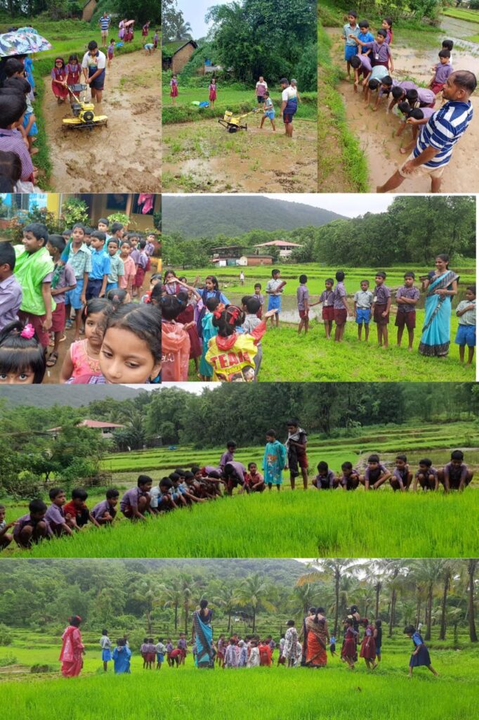 दाखवत ती कशी चालवावीत याविषयी माहिती दिली. मुलांनी व मुलींनी यावेळी प्रत्यक्ष शेतात उतरून ट्रॅक्टर चालवण्याचा आनंद लुटला. यावेळी विवेक नार्वेकर यांनीही विद्यार्थ्यांना मार्गदर्शन करत जिल्हा परिषद राबवत असलेल्या या उपक्रमाचे कौतुक केले. यावेळी शाळेतील शिक्षक व मुलांनी प्रत्यक्ष शेतीमध्ये उतरत तरवा काढणी, भात लावणी आदी कामांचा मनमुराद आनंद लुटत एक दिवस बळीराजासाठी उपक्रम साजरा केला. यावेळी प्रभाकर खडपकर यांनी मुलांना खाऊचे वाटप केले. या उपक्रमाला शाळेच्या मुलांचा उत्स्फूर्त प्रतिसाद लाभला. मुलांनी यावेळी समूहगीत, कविता, गाणी म्हणत आपला आनंद द्विगुणित केला. उपक्रमाच्या शेवट मुख्याध्यापिका अनुराधा सुर्वे यांनी हा उपक्रम राबविताना सहकार्य केलेल्या सर्वांचे आभार व्यक्त केले.