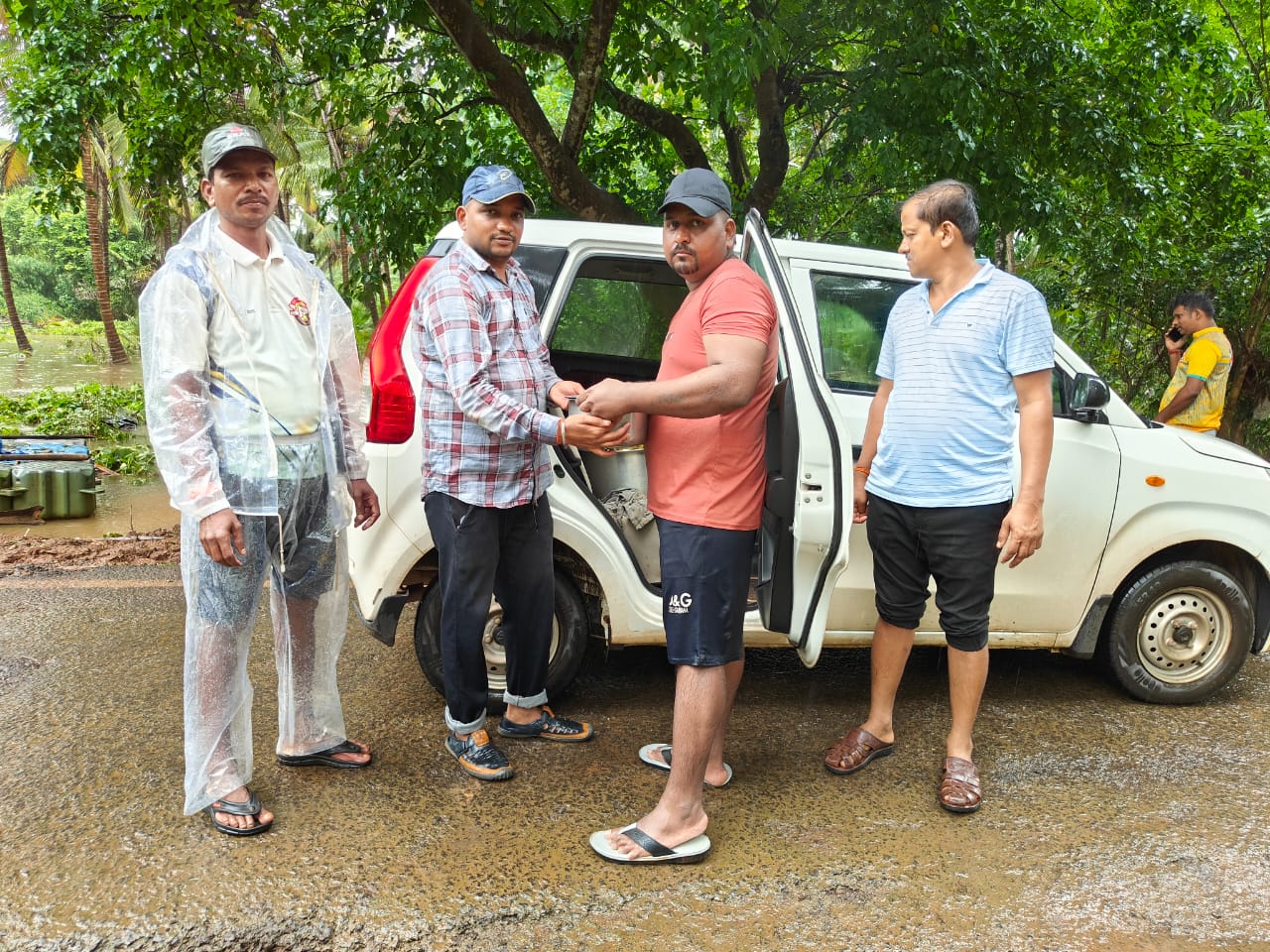 सिंधुदुर्ग जिल्ह्यामध्ये शनिवारी आणि रविवारी मोठ्या प्रमाणात अतिवृष्टी झाली. त्यामध्ये ठीकठिकाणी पुरस्थिती उद्भवून नागरिकांच्या घरामध्ये पाणी शिरले. त्यामुळे लोकांची जेवण व राहण्याची मोठी गैरसोय निर्माण झाली. यावेळी आमदार वैभव नाईक यांनी पाहणी केली. पावशी शेलटेवाडी येथील ग्रामस्थांची तत्काळ जेवणाची सोय करण्यास सांगितले. आमदार वैभव नाईक यांच्या मार्गदर्शनाखाली जेवणाचे वाटप पावशी माजी सरपंच बाळा कोरगावकर, आंबडपाल उपसरपंच गोट्या चव्हाण, पिंगुळी येथील शिवसैनिक संजय ठाकूर, रोहित शेलटे, शंभा शेलटे व ग्रामस्थ यांनी केले.