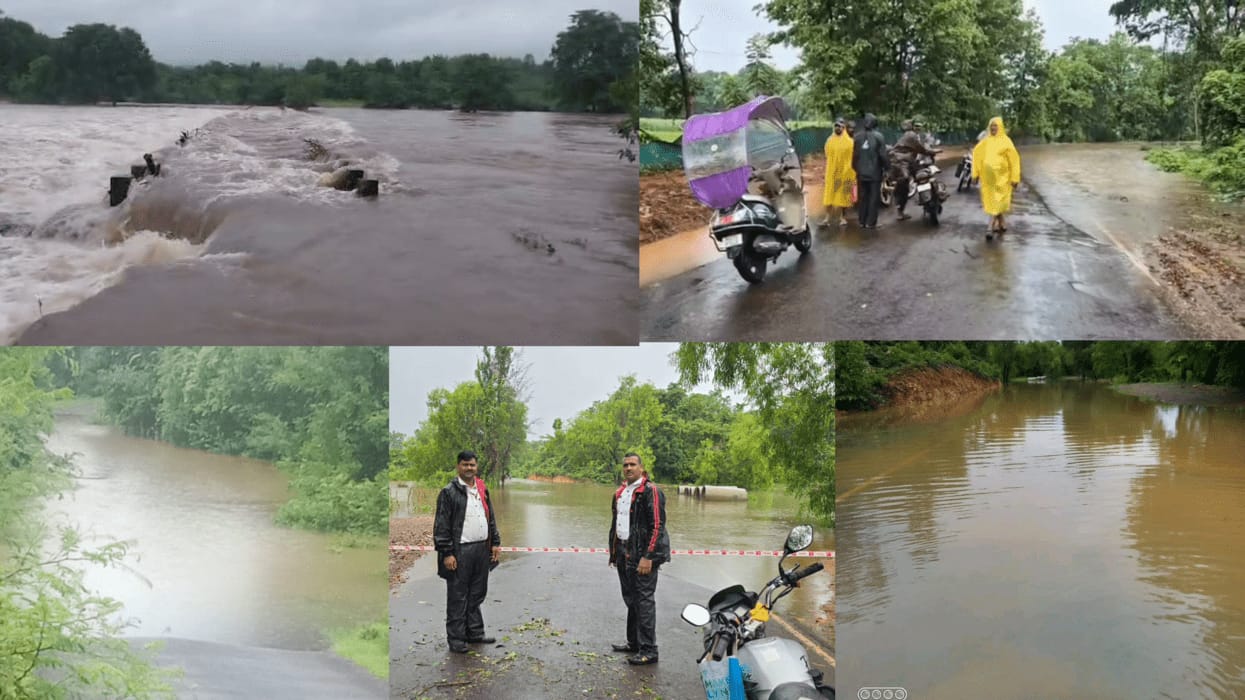 रस्ते गेले पाण्याखाली ; वाहतूक ठप्प ; पोलीस प्रशासन सतर्क..