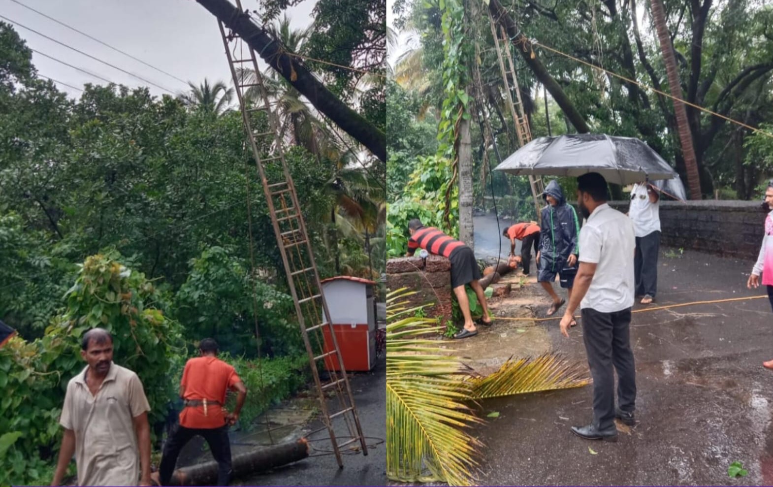 धुरीवाडा येथे कोसळलेला माड सहकाऱ्यांच्या मदतीने तात्काळ हटवला…