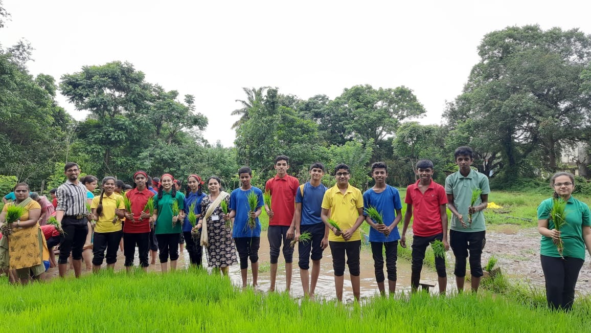 फोटोओळी – स्कूलच्या विद्यार्थ्यांकडून शेतीची प्रात्यक्षिके करून घेण्यात आली.