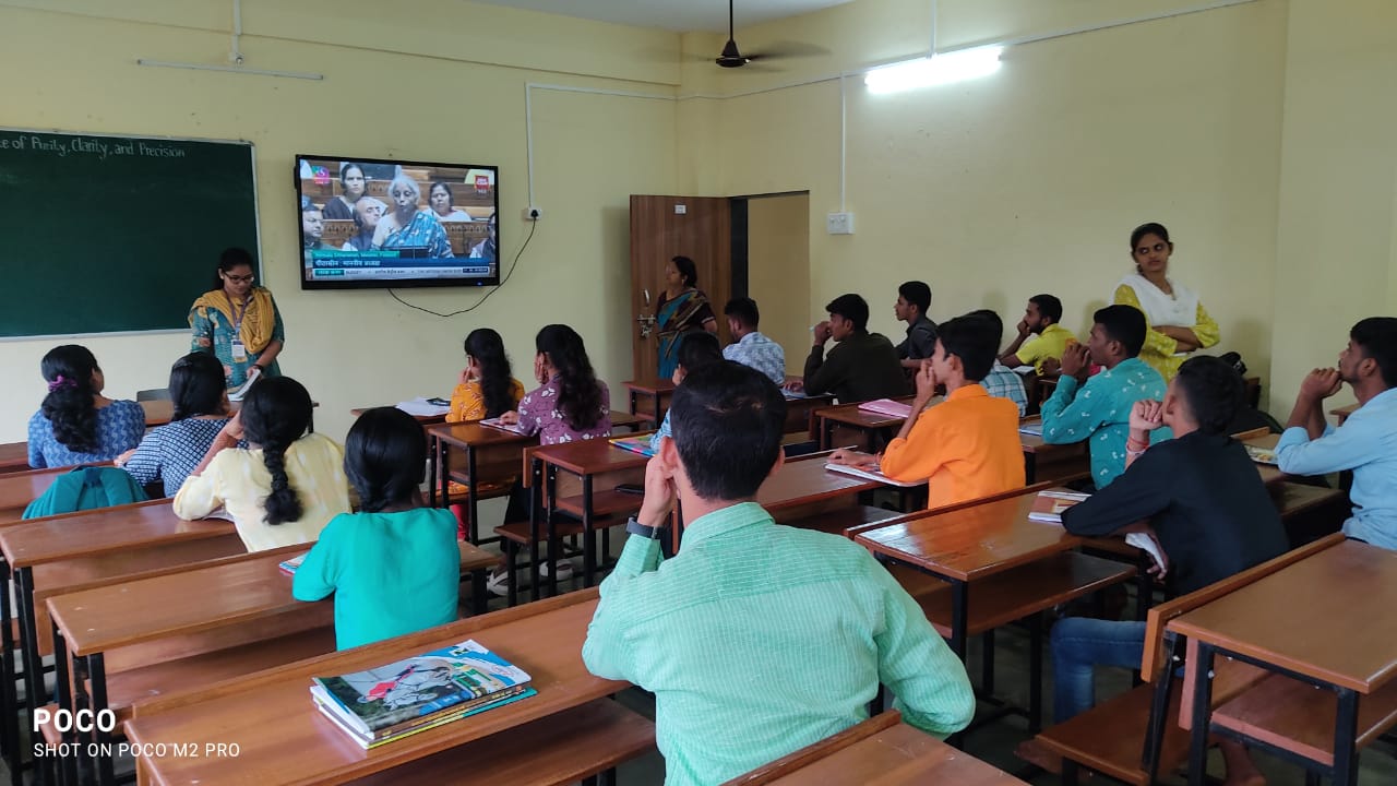 ⚡कुडाळ ता.२३-: देशाच्या अर्थमंत्री निर्मला सीतारामन यांनी अंतरिम बजेट आज संसदेमध्ये मांडलं.. या बजेटबद्दल विद्यार्थाना माहिती व्हावी, विद्यार्थ्यांमधली संशोधन वृत्ती वाढावी यासाठी शिरगावचा पुंडलिक अंबाजी करले महाविद्यालयात हे बजेट सेशन विद्यार्थ्यांना लाईव्ह दाखवण्यात आले. महाविद्यालयाचे प्राचार्य समीर तारी यांच्या संकल्पनेतून हा ऊपक्रम राबवण्यात आला त्याचा विद्यार्थ्यांनी लाभ घेतला.