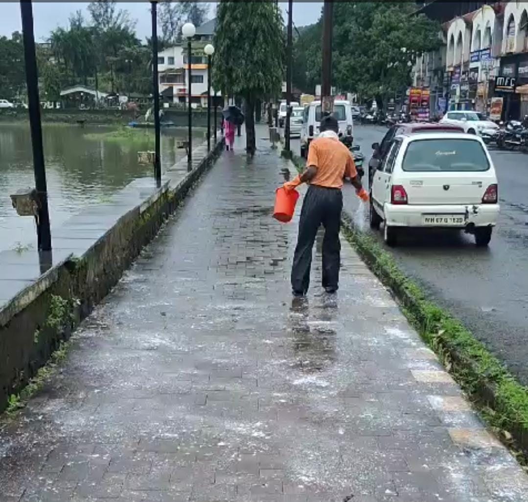 शहरातील मोती तलाव काठावर पहाटे मॉर्निंग वॉक व सायंकाळी इव्हिनिंग वॉकला नागरीक येत असतात. यात ज्येष्ठांची संख्या अधिक असते. मागील चार दिवसांत झालेल्या पावसामुळे तलावाचा फुटपाथ बुळबुळीत झाला होता. याचा अंदाज न आल्याने शुक्रवारी सकाळी एक वृद्धा घसरून पडली. याबाबतची माहिती सुवर्णकार पावन चोडणकर यांनी सामाजिक कार्यकर्ते देव्या सुर्याजी यांना दिली. यानंतर नगरपरिषदेचे आरोग्य कर्मचारी दीपक म्हापसेकर यांना सुर्याजींनी कल्पना दिली. न.प.च्या कर्मचाऱ्यांनी तात्काळ फुटपाथवर ब्लिचिंग पावडर टाकत परिसर साफ केला. तसेच पावसाच्या दिवसात फुटपाथवरून चालताना काळजी घेण्याचे आवाहन नगरपरिषद प्रशासनाकडून नागरिकांना करण्यात आले आहे.