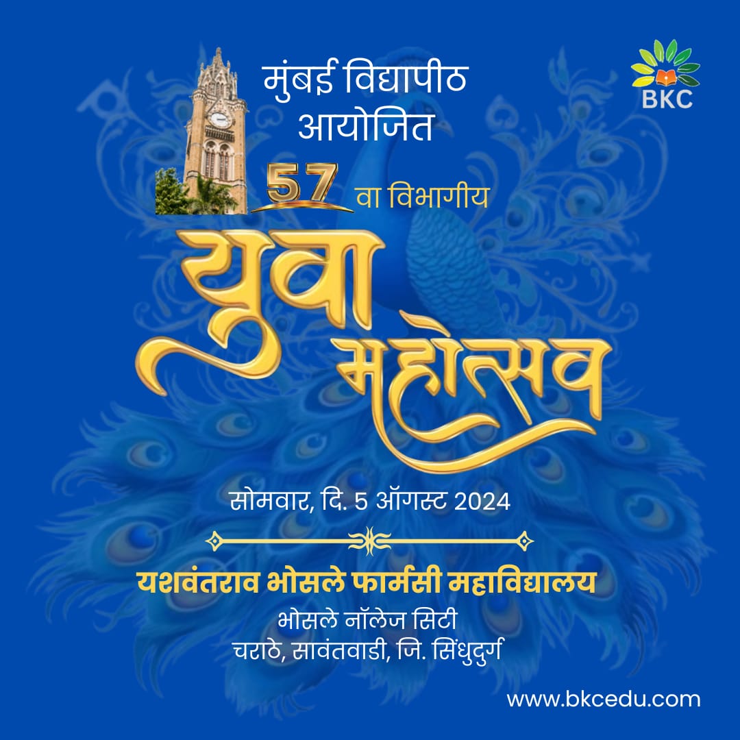 सावंतवाडी : मुंबई विद्यापीठाच्या विद्यार्थी विकास विभागातर्फे दरवर्षी युवा महोत्सवाचे आयोजन करण्यात येते. विद्यार्थ्यांच्या अंगीभूत कलागुणांना वाव देणाऱ्या या महोत्सवाचे आयोजन ५ ऑगस्ट रोजी करण्यात येणारं असून यावर्षी यजमानपदाचा मान यशवंतराव भोसले कॉलेज ऑफ फार्मसीला मिळाला आहे.