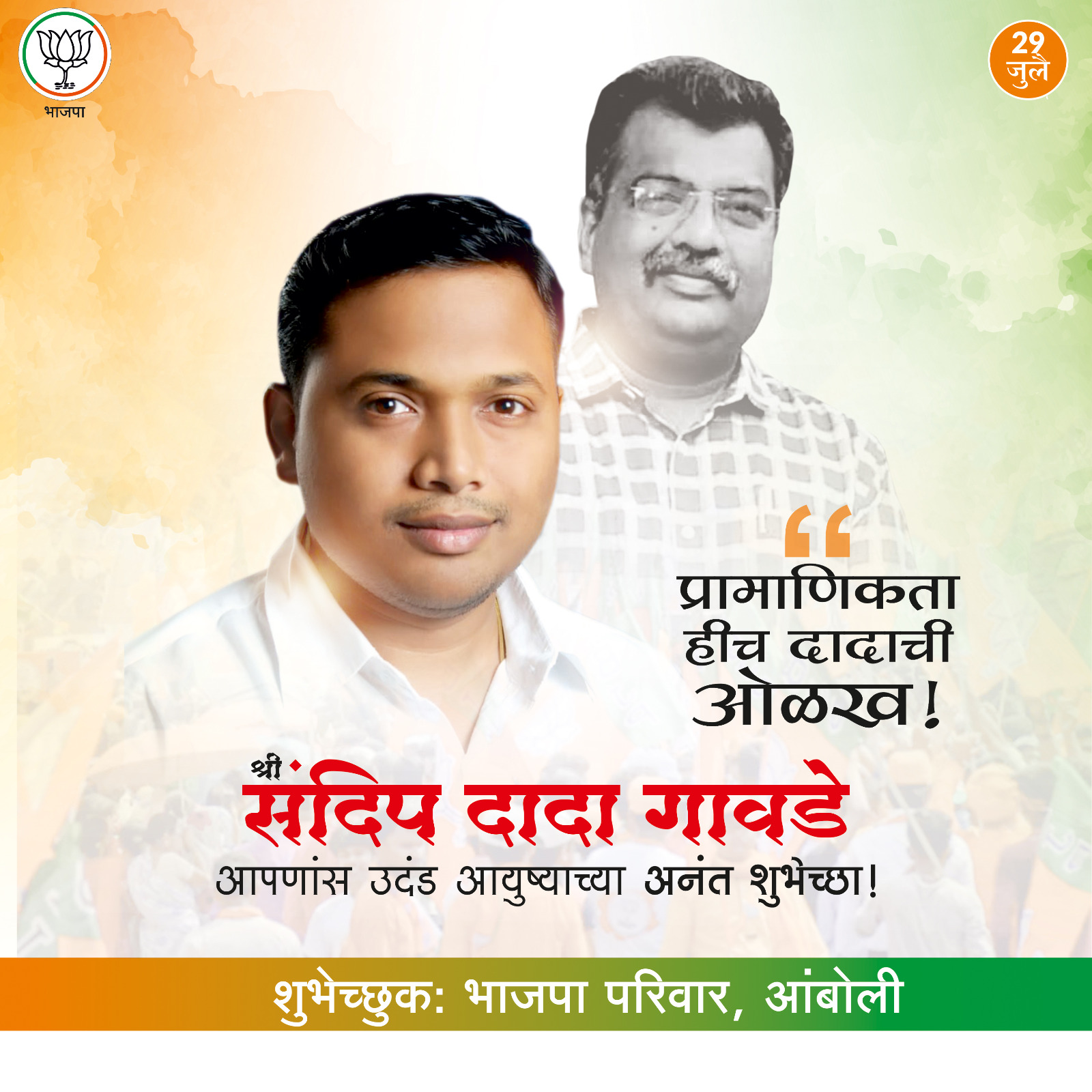 ⚡सावंतवाडी ता.२९-: राजकारणाचा उपयोग ग्रामस्थांसाठी, त्यांच्या हितासाठी करणारा युवा चेहरा म्हणजे संदिप एकनाथ गावडे. आपल्या कार्यकर्तृत्वाच्या जोरावर अल्पावधीतच जनतेला आपलसं करणार हे नेतृत्व. मूळ फणसवडे येथील असणाऱ्या संदिपजींचा जन्म सावंतवाडीत झाला. डोंबिवली येथे त्यांनी आपल उच्च शिक्षण पूर्ण केल. एम.बी.ए फायनान्स ही पदवी त्यांनी संपादित केली. आई-वडिलांनी दिलेला समाजसेवेचा वारसा ते पुढे घेऊन गेले. जिल्हा परिषद अध्यक्ष असणाऱ्या मामा चंद्रकांत गावडे यांच्याकडून त्यांनी राजकारणाचे धडे घेतले. याचदरम्यान भाजपचे नेते, कॅबिनेट मंत्री रविंद्रजी चव्हाण यांच्या ते संपर्कात आले. रवीदादांच्या कार्यकर्तृत्वाने प्रभावीत होऊन त्यांनी राजकारणात सक्रियपणे उतरण्याचा निर्णय घेतला.