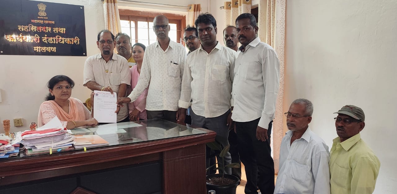 सेवादल काँग्रेस व मालवण तालुका राष्ट्रीय काँग्रेसच्या पदाधिकाऱ्यांनी आज मालवण तहसीलदार कार्यालयात तहसीलदार वर्षा झाल्टे यांची भेट घेऊन रेशन धान्य वितरणात निर्माण झालेल्या समस्येबाबत चर्चा करून निवेदन सादर केले. यावेळी सेवादल काँग्रेसचे जिल्हाध्यक्ष श्रीकृष्ण तळवडेकर, काँग्रेस ओबीसी सेल जिल्हाध्यक्ष महेश अंधारी, युवक काँग्रेसचे देवानंद लुडबे, सौ. पल्लवी खानोलकर, काँग्रेस जिल्हा कार्यकारिणी सदस्य जेम्स फर्नांडिस, अल्पसंख्यांक सेल तालुकाध्यक्ष सरदार ताजर, काँग्रेस शहराध्यक्ष लक्ष्मीकांत परुळेकर, लक्ष्मीकांत तळवडेकर, भाई चव्हण, सुरेश वस्त, चंदन पांगे, मेघश्याम लुडबे, दिलीप तळगावकर आदी उपस्थित होते.