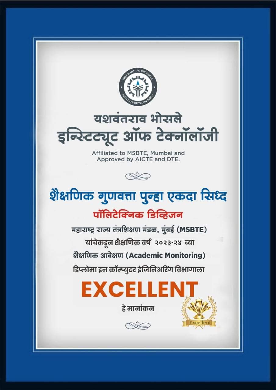 यामध्ये अध्यापन पद्धत, निकाल ,राबविण्यात येणारे शैक्षणिक व इतर उपक्रम ,इंडस्ट्रियल व्हिजिट, तज्ञांची व्याख्याने, व्यक्तिमत्व उद्योजकता विकास कार्यक्रम, प्लेसमेंट आदी अनेक गोष्टींचा समावेश असतो. सर्व बाबींची काटेकोर तपासणी केल्यानंतर मंडळामार्फत पुअर, सॅटिसफॅक्टरी, गुड ,व्हेरी गुड , एक्सलंट अशा श्रेणीमध्ये मानांकन देण्यात येते. यापैकी यशवंतराव भोसले इन्स्टिट्यूट ऑफ टेक्नॉलॉजी मधील कॉम्प्युटर इंजिनिअरिंग डिप्लोमा विभागाला एक्सलंट हे सर्वोच्च मानांकन प्राप्त झाले आहे.