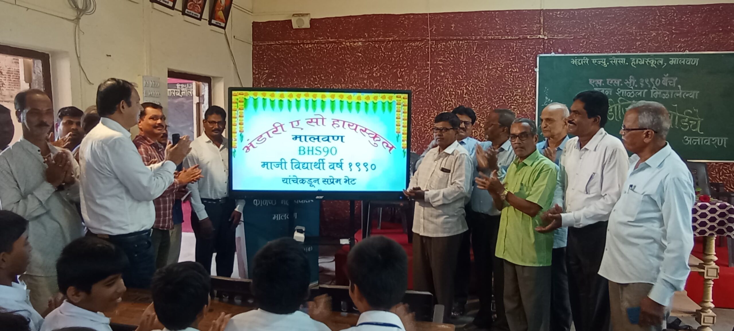 मालवण येथील भंडारी ए. सो. हायस्कुलच्या सन १९९० च्या दहावी बॅच च्या माजी विद्यार्थ्यांकडून भंडारी हायस्कुलला प्रदान करण्यात आलेल्या डिजिटल बोर्डचे उदघाटन प्रशालेच्या प्रशालेचे माजी विद्यार्थी फिरोज पटेल यांच्या हस्ते करण्यात आले. विविध सेवा सुविधा असलेल्या या डिजिटल बोर्डचा उपयोग विद्यार्थ्यांना अनेक शैक्षणिक उपक्रमात होणार आहे.