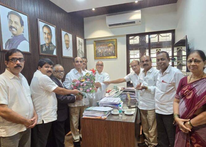 कणकवली : राष्ट्रवादी काँग्रेस पक्षाचे विधानपरिषदेचे नवनियुक्त आमदार शिवाजीराव गरजे यांची सिंधुदुर्ग जिल्हा राष्ट्रवादी काँग्रेस कमिटी च्या वतीने मुंबई प्रदेश कार्यालय येथे सदिच्छा भेट घेत शुभेच्छा देण्यात आल्या. त्यावेळी सिंधुदुर्ग राष्ट्रवादी काँग्रेस जिल्हाध्यक्ष अबिद नाईक, जिल्हा सरचिटणीस सावळाराम अनावकर, प्रदेश चिटणीस एम. के. गावडे, प्रदेश चिटणीस सुरेश गवस, महिला जिल्हाध्यक्षा प्रदनया परब, सावंतवाडी तालुकाध्यक्ष उदय भोसले जिल्हा उपाध्यक्ष सुभाष सावंत, प्रांतिक सदस्य विलास गावकर, जिल्हा उपाध्यक्ष संदीप राणे आदी उपस्थित होते.