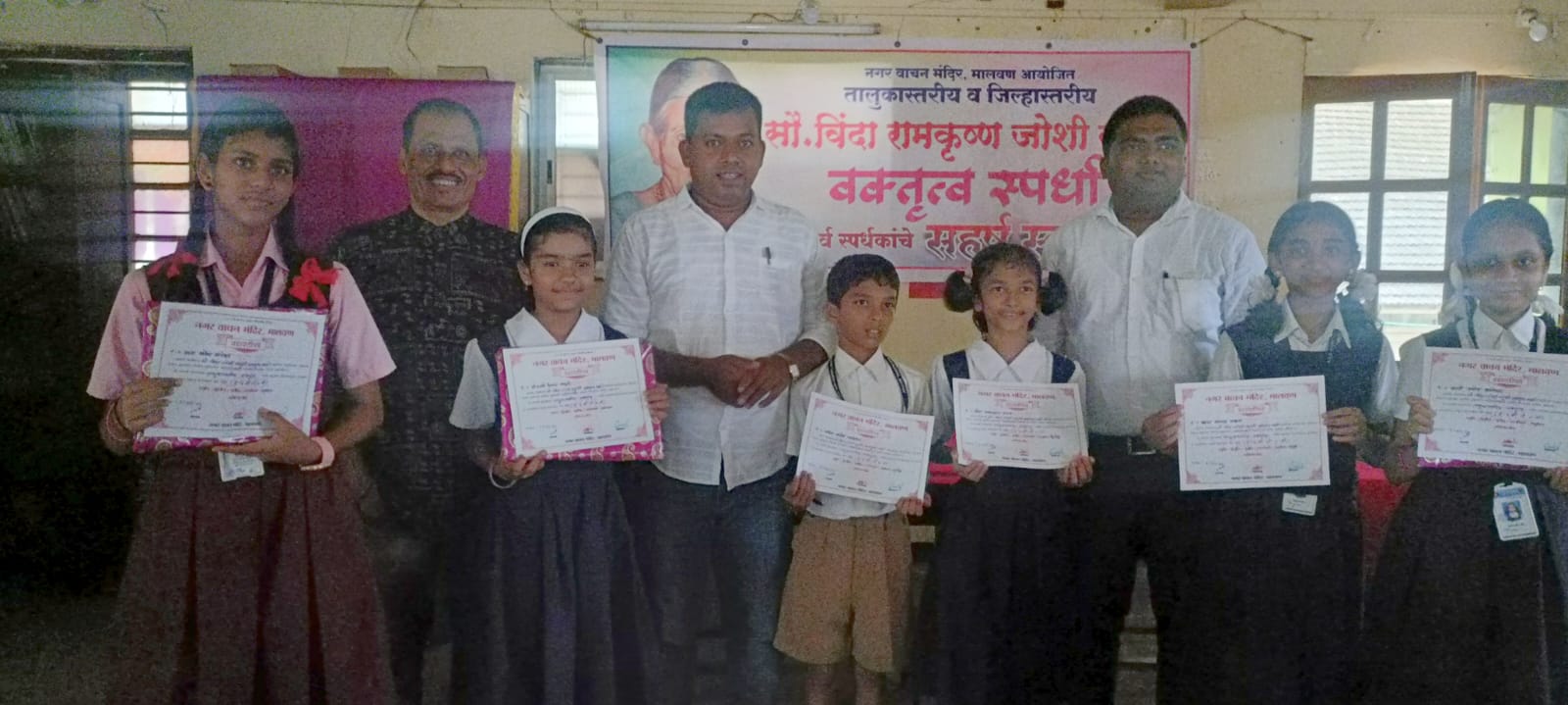 मालवण नगर वाचन मंदिरच्यावतीने घेण्यात आलेल्या सौ. विंदा जोशी स्मृती वक्तृत्व स्पर्धेत पाचवी ते सातवी गटात ओजस्वी कैलास साळुंके (टोपीवाला हायस्कूल), आठवी ते दहावी गटात पार्थ प्रदिप सामंत (टोपीवाला हायस्कूल), अकरावी व बारावी गटात सम्राट बाबुराव राजे (टोपीवाला हायस्कूल) यांनी प्रथम क्रमांक प्राप्त केले.
