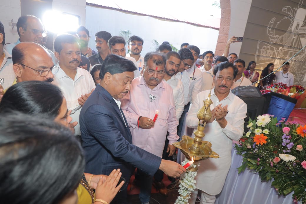 सोहळा माजी केंद्रीय मंत्री खासदार नारायण राणे यांच्या हस्ते नामफलकाचे अनावरण करून करण्यात आले. तसेच खा. नारायण राणे व सार्वजनिक बांधकाम मंत्री तथा पालकमंत्री रविंद्र चव्हाण यांच्या हस्ते दीपप्रज्वलन करण्यात आले.