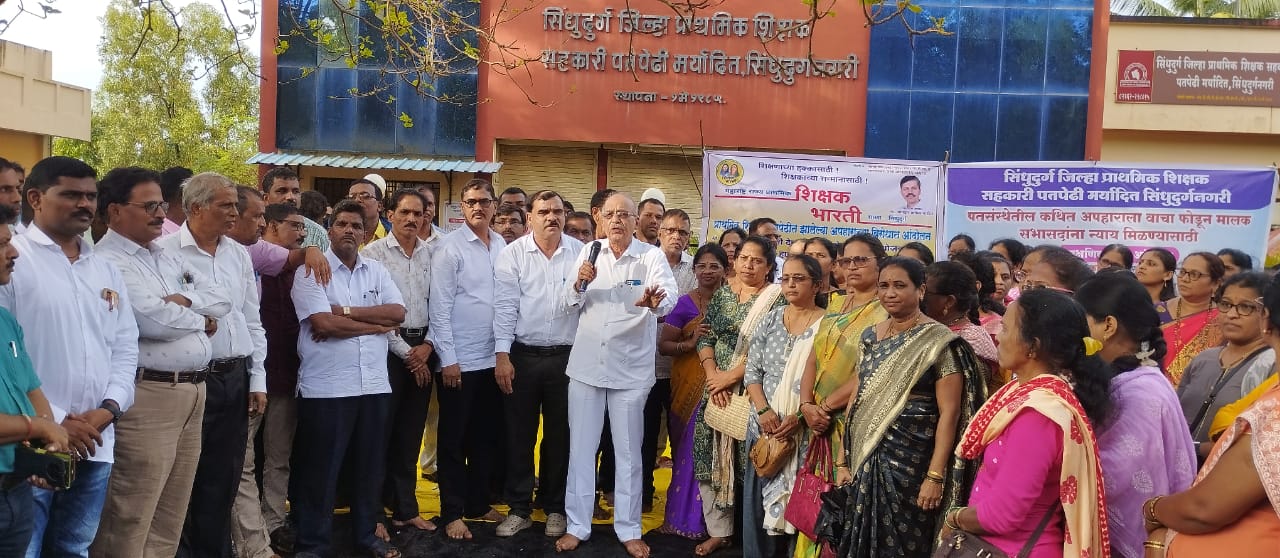 सिंधुदुर्ग जिल्हा प्राथमिक शिक्षक सहकारी पतपेढी शाखा वेंगुर्ला शाखाधिकार्याकडून ४१ लाखाची आर्थिक अनियमितता झाल्याचे उघड झाले आहे. याबाबत आज सिंधुदुर्ग जिल्हा प्राथमिक शिक्षक सहकारी पतपेढी सिंधुदुर्गनगरी येथे महाराष्ट्र राज्य प्राथमिक शिक्षक भारती शाखा सिंधुदुर्ग व अखिल भारतीय प्राथमिक शिक्षक संघ यांच्या वतीने धरणे आंदोलन छेडण्यात आले. झालेल्या अपहरला वाचा फ़ोढून मालक सभासदांना न्याय मिळावा. तसेच झालेल्या अपराची माहिती देण्यासाठी संचालक मंडळाने विशेष सभेचे आयोजन करावे. संशयीत दप्तराची हाताळणी त्रयस्त यंत्रणेमार्फत करावी, वेंगुर्ला शाखाधिकारी यांच्यासह सर्व दोषींवर कारवाई करावी, स्वातंत्र यंत्रणेमार्फत सर्व शाखांची फेर तपासणी करावी आदी मागण्यासाठी आज अखिल भारतीय प्राथमिक शिक्षक संघाचे अध्यक्ष राजा कविटकर महाराष्ट्र राज्य प्राथमिक शिक्षक भारती शाखा सिंधुदुर्ग अध्यक्ष संतोष पाताडे यांच्या नेतृत्वाखाली आंदोलन करण्यात आले .यावेळी म ल देसाई, प्रकाश दळवी, के टी चव्हाण, आदी पदाधिकाऱ्यांसह मोठ्या संख्येने पतसंस्थेचे सभासद शिक्षक उपस्थित होते.
