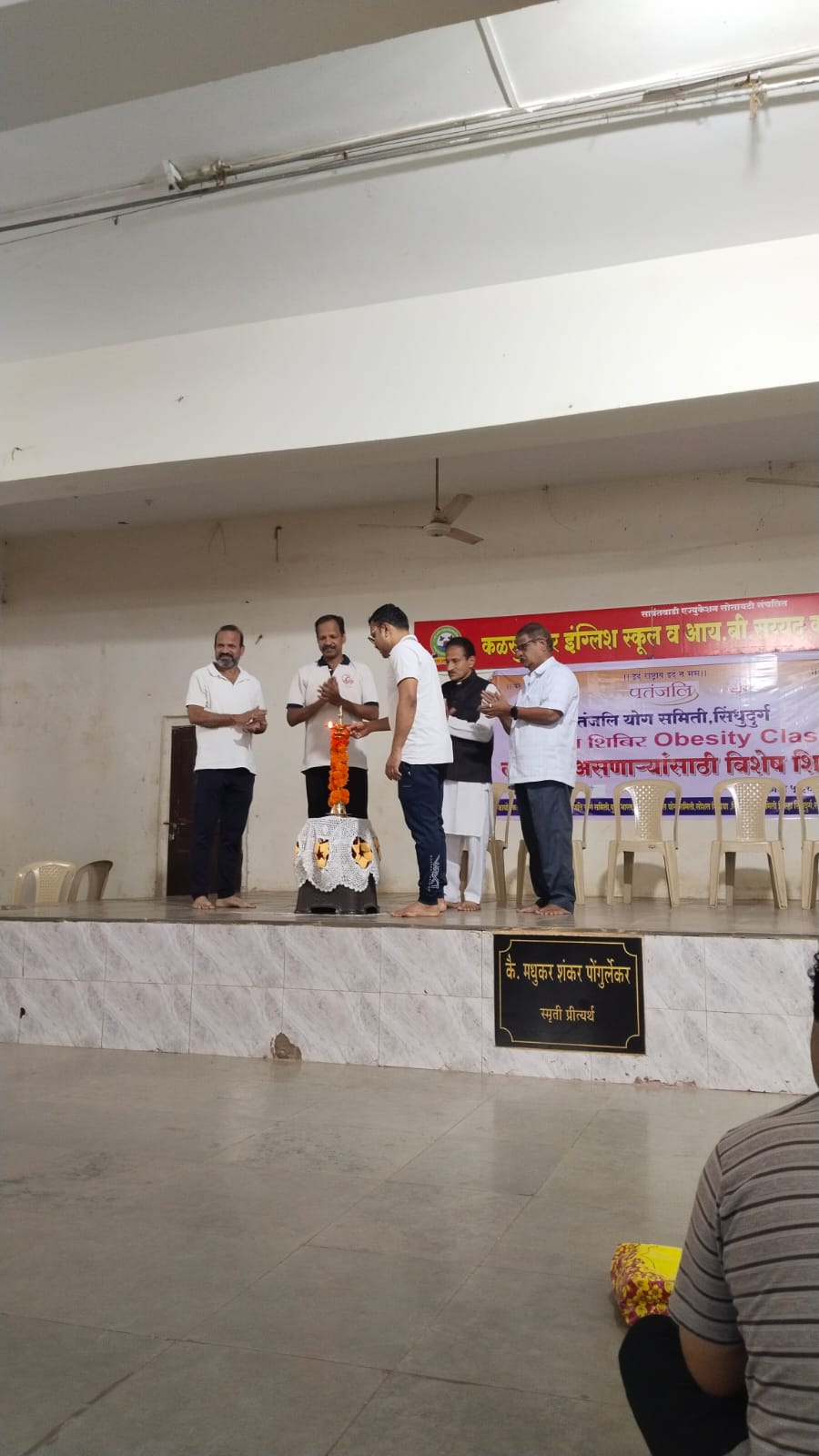⚡सावंतवाडी ता.१६-: पतंजली योग समिती सिंधुदुर्ग आयोजित कळसुलकर हायस्कूल सावंतवाडी येथे आज दिनांक 16 ऑगस्ट 2024 रोजी लठ्ठपणा असणाऱ्यांसाठी विशेष योग शिबीर अर्थात मोटापा शिबिर चालू करण्यात आले. श्री श्रीधर पाटील तहसीलदार सावंतवाडी हे या शिबिराला उदघाटक म्हणून लाभले , तसेच पतंजली योगसमिती सिंधुदुर्ग चे जिल्हा प्रभारी श्री शेखर बांदेकर हे शिबिर अध्यक्ष म्हणून लाभले, त्यावेळी श्री महेश भाट, श्री दत्तात्रय निखार्गे , श्री लक्ष्मण पावसकर आदी उपस्थित होते.