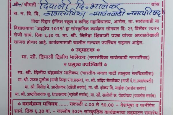⚡दोडामार्ग ता.२८-: सावंतवाडी विधानसभा मतदारसंघाचे आमदार दीपक केसरकर यांच्या माध्यमातून मंजूर झालेल्या आयी कुंभारवाडी येथील सभामंडपाच्या कामाचे भूमिपूजन उत्साहात पार पडले. या सभामंडपामुळे गावातील सामाजिक, सांस्कृतिक व सार्वजनिक उपक्रमांसाठी हक्काची जागा उपलब्ध होणार आहे.भूमिपूजन सोहळ्यास शिवसेना तालुका प्रमुख गणेशप्रसाद गवस, उपतालुका प्रमुख बबलू पांगम, सरपंच संघटना अध्यक्ष अनिल शेटकर, शाखाप्रमुख विनोद बेळेकर यांच्यासह आयी गावाचे…