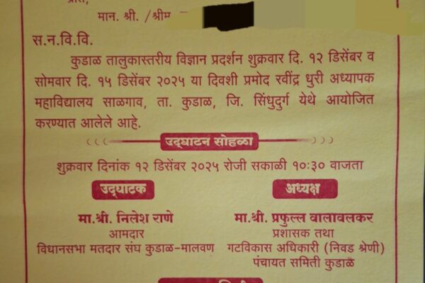 ⚡मालवण ता.११-:बॅरिस्टर नाथ पै सेवांगण संचालितसाने गुरुजी वाचन मंदिर मालवण आयोजित तालुकास्तरीय गीतगायन स्पर्धेत इ 8वी ते 10वी या गटातप्रथम क्रमांक – कु. स्वरा अनिरुद्ध आचरेकर व द्वितीय क्रमांक कृतिका शिवराम आयर यांना प्राप्त झाले तसेचकथाकथन स्पर्धेत कु . एंजल स्टीफन फर्नांडीस हिला तृतीय क्रमांक प्राप्त झाला. सर्व यशस्वी स्पर्धकांचे व मार्गदर्शकांचेसंस्थाचालक स्थानिक स्कूल समितीचे…
