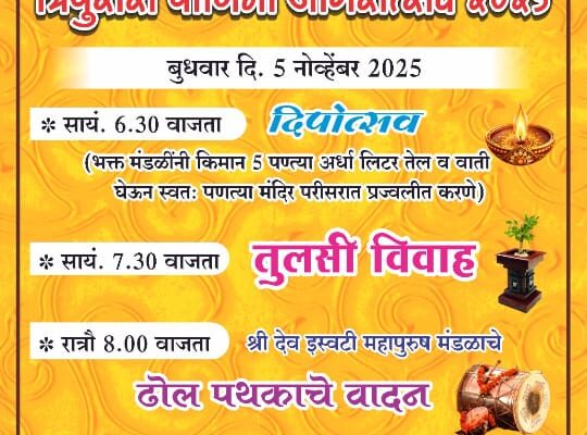 दुर्वांकुर कला क्रीडा मंडळाच्यावतीने भजन स्पर्धेचे आयोजन.. ⚡सावंतवाडी ता.०५-: मळगाव-आजगावकरवाडी येथील जिल्हास्तरीय निमंत्रित भजन स्पर्धेत पाट येथील श्री रामकृष्ण हरी सेवा संघ भजन मंडळाने प्रथम क्रमांक पटकाविला.कणकवली येथील श्री लिंगेश्वर पावणादेवी प्रासादिक भजन मंडळाने द्वितीय तर कणकवली जानवली येथील श्री सिद्धीविनायक प्रासादिक भजन मंडळाने तृतीय क्रमांक मिळविला.दुर्वांकुर कला क्रीडा मंडळाच्यावतीने मळगाव-आजगावकरवाडी गोसावीवाडी येथील दत्त मंदिर…