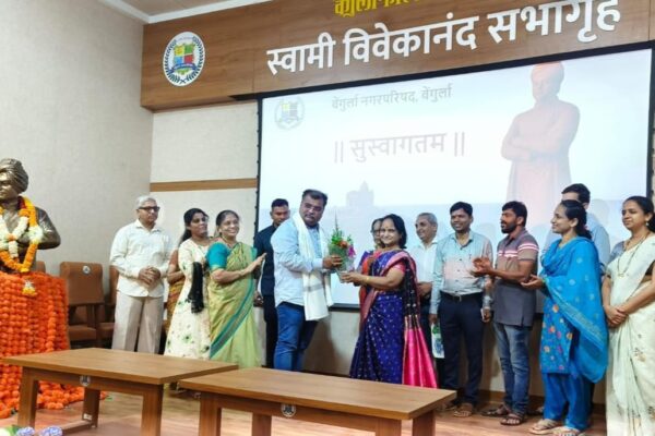 ⚡वेंगुर्ला ता.२९-: स्वामी विवेकानंद यांच्या वेंगुर्ला भेटीच्या ऐतिहासिक स्मृती जतन करण्याच्या उद्देशाने वेंगुर्ला नगरपरिषदकडून उभारण्यात आलेल्या स्वामी विवेकानंद हॉल निर्मितीसाठी महत्त्वाची भूमिका बजावणारे तत्कालीन पालकमंत्री रविद्र चव्हाण यांचा आनंदयात्री वाङ्मय परिवारातर्फे ज्येष्ठ लेखिका वृंदा कांबळी यांच्या हस्ते सन्मानपूर्वक सत्कार करण्यात आला.