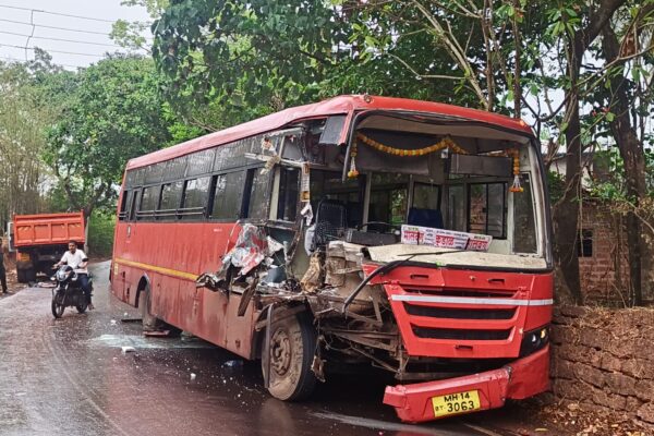 सुदैवाने चालक आणि प्रवासी बचावले -बसचे मोठे नुकसान:चौके धामापूर मार्गावर चौकेपासून काही अंतरावर झाला अपघात.. मालवण दि प्रतिनिधी :-कुडाळ येथून मालवणच्या दिशेने दुपारी 12.30 वाजता सुटणारी कुडाळ मालवण एसटी बस आणि चौके वरून धामापूरच्या दिशेने जाणाऱ्या डंपर यांच्यात चौके नारायण वाडी या ठिकाणी मंगळवारी दुपारी समोरासमोर जोरदार धडक बसल्याने अपघात झाला. या अपघातात एसटी बसचा…